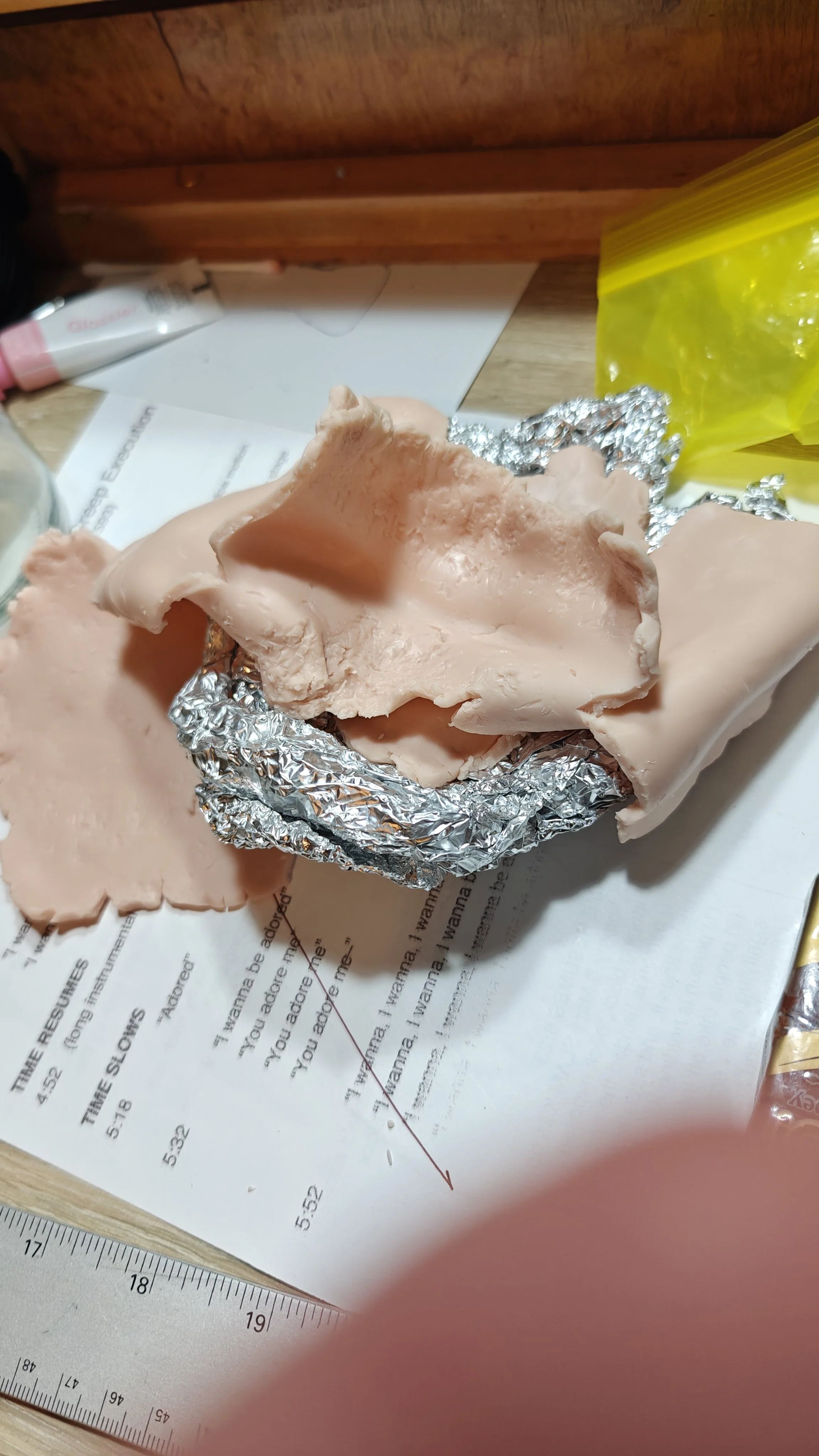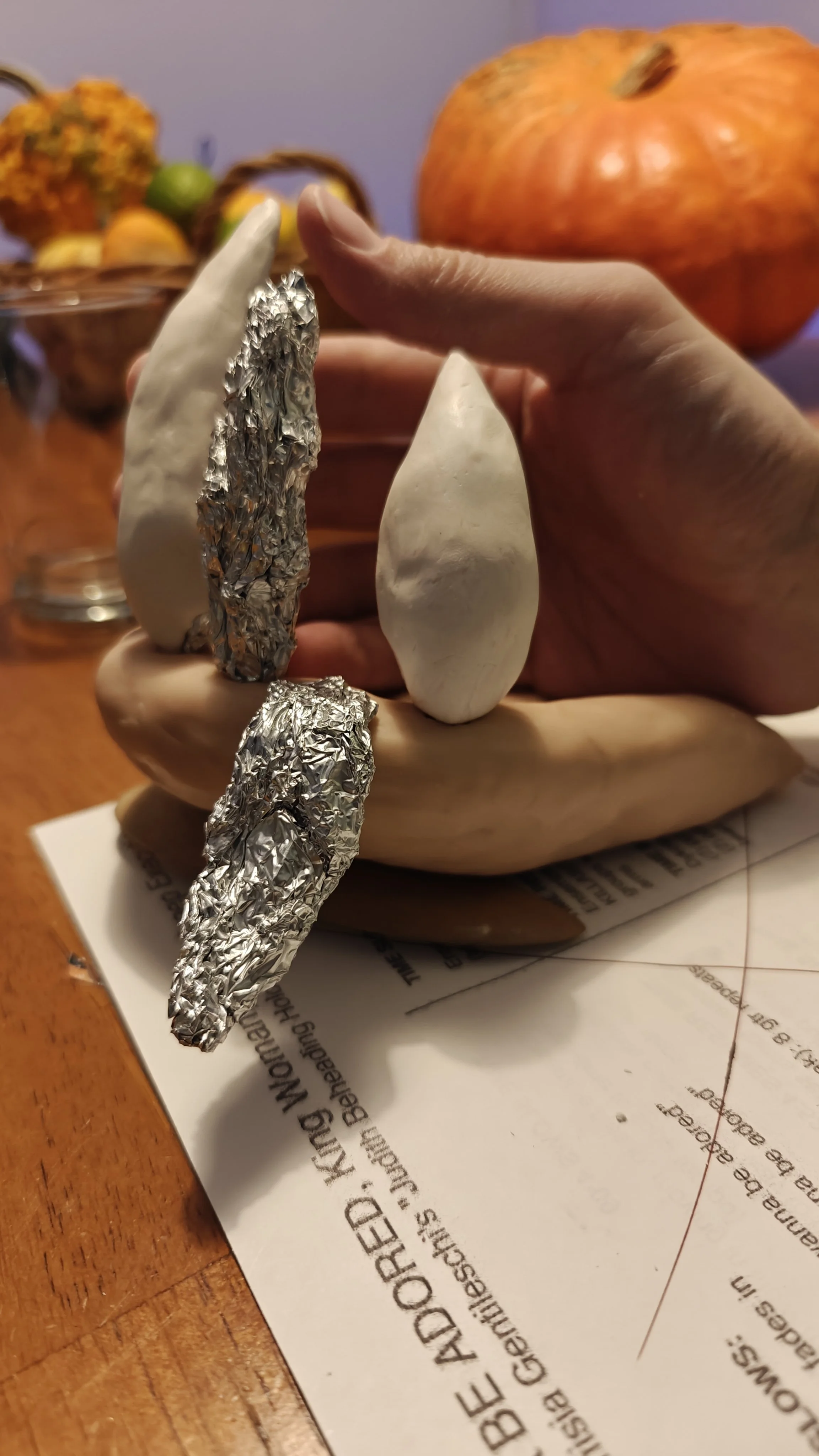 If clay was the flesh for this project, then the bones were tinfoil. Aluminum foil allowed me to very quickly prototype the shapes I wanted, and to approach the forms that were needed without wasting too much clay. The foil had the added benefit of lending my structures a bit of extra sturdiness, which ended up being very helpful as I had many shapes sticking up directly into the air.