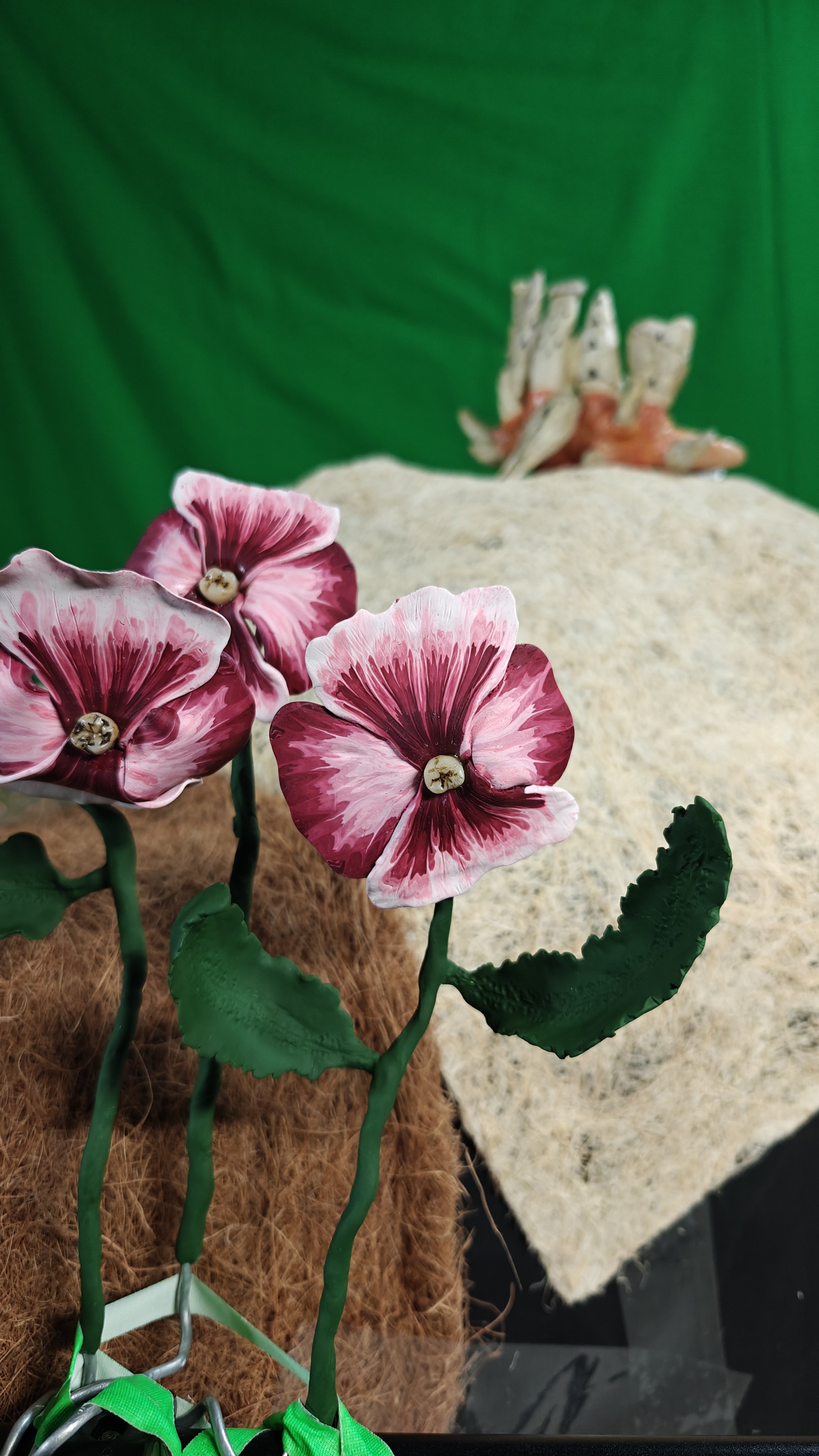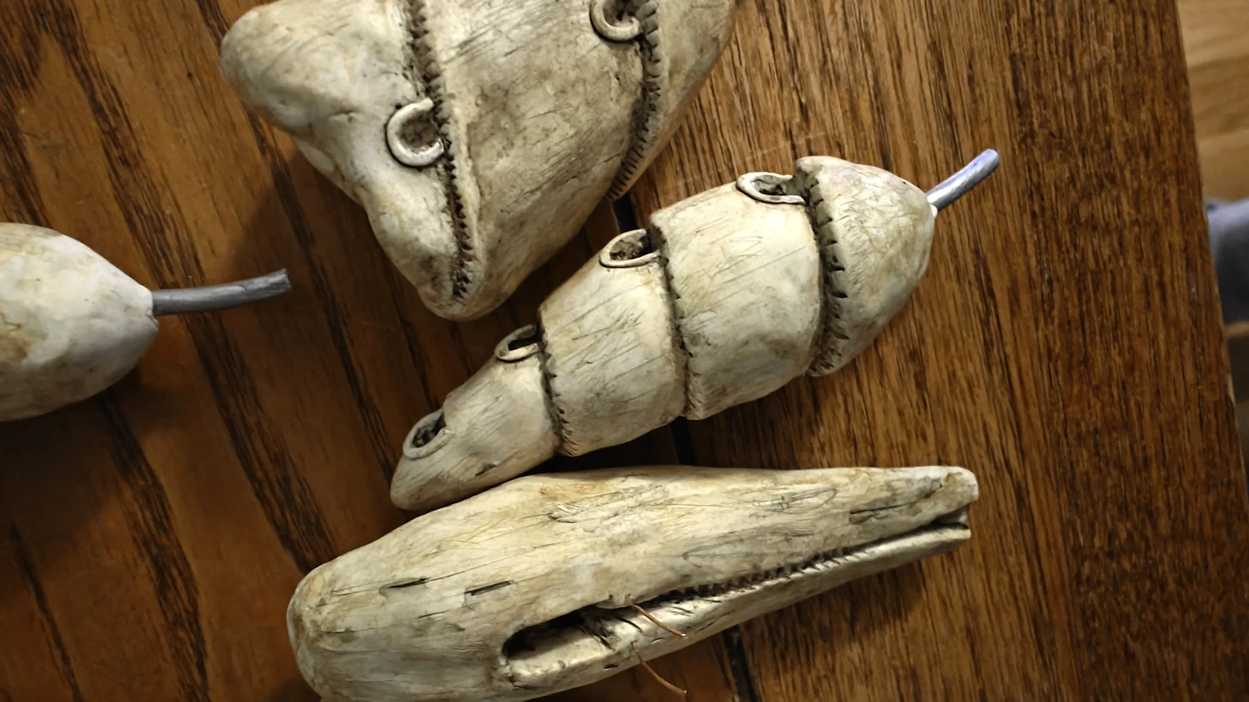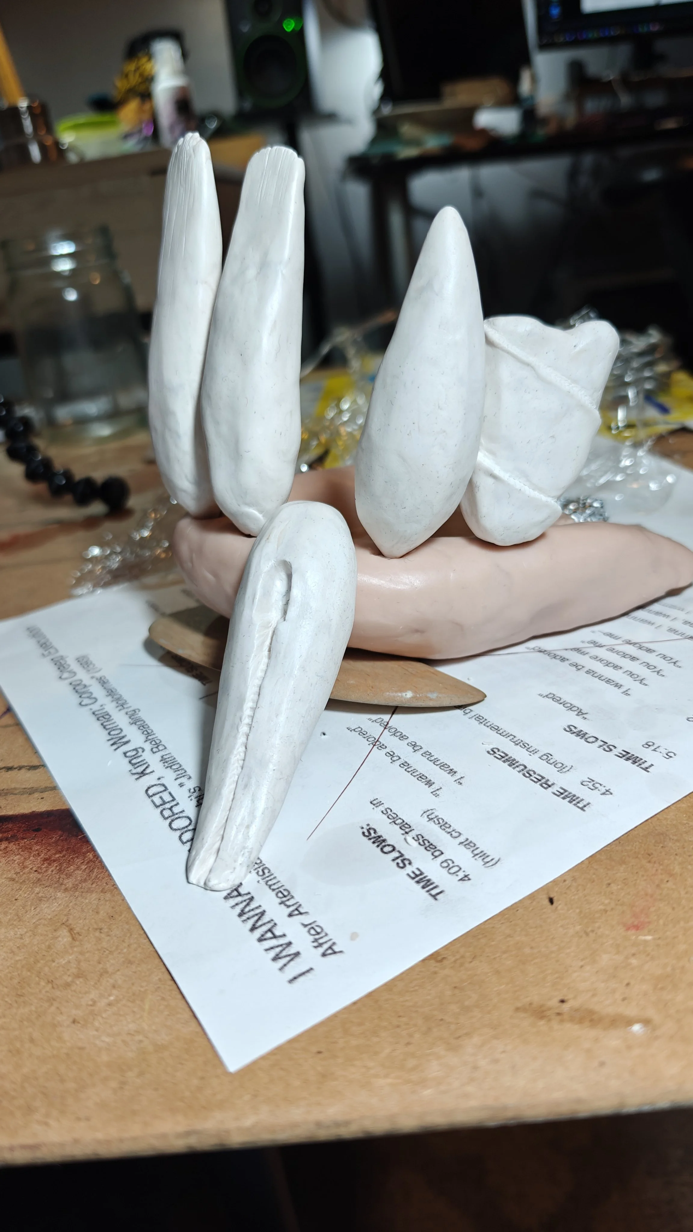 Then there were the resin teeth; Hawkeye planned to use them for the act itself, and gave some to me to use as well. These were meant for dentures and were actual castings from real teeth, so they were quite fun to add into the sets I needed to build. I added them into flowers, furniture, and even made a little insect-like critter with one of the teeth and a set of fairy wings.